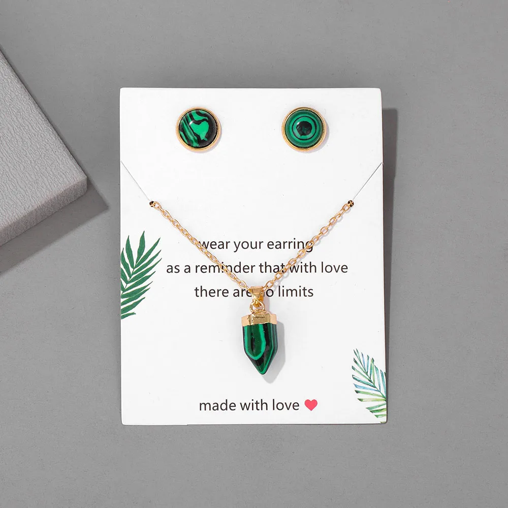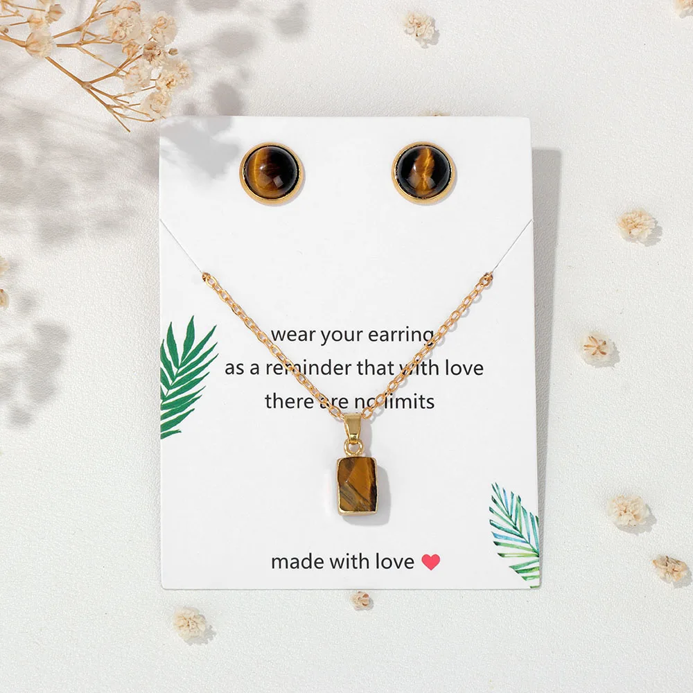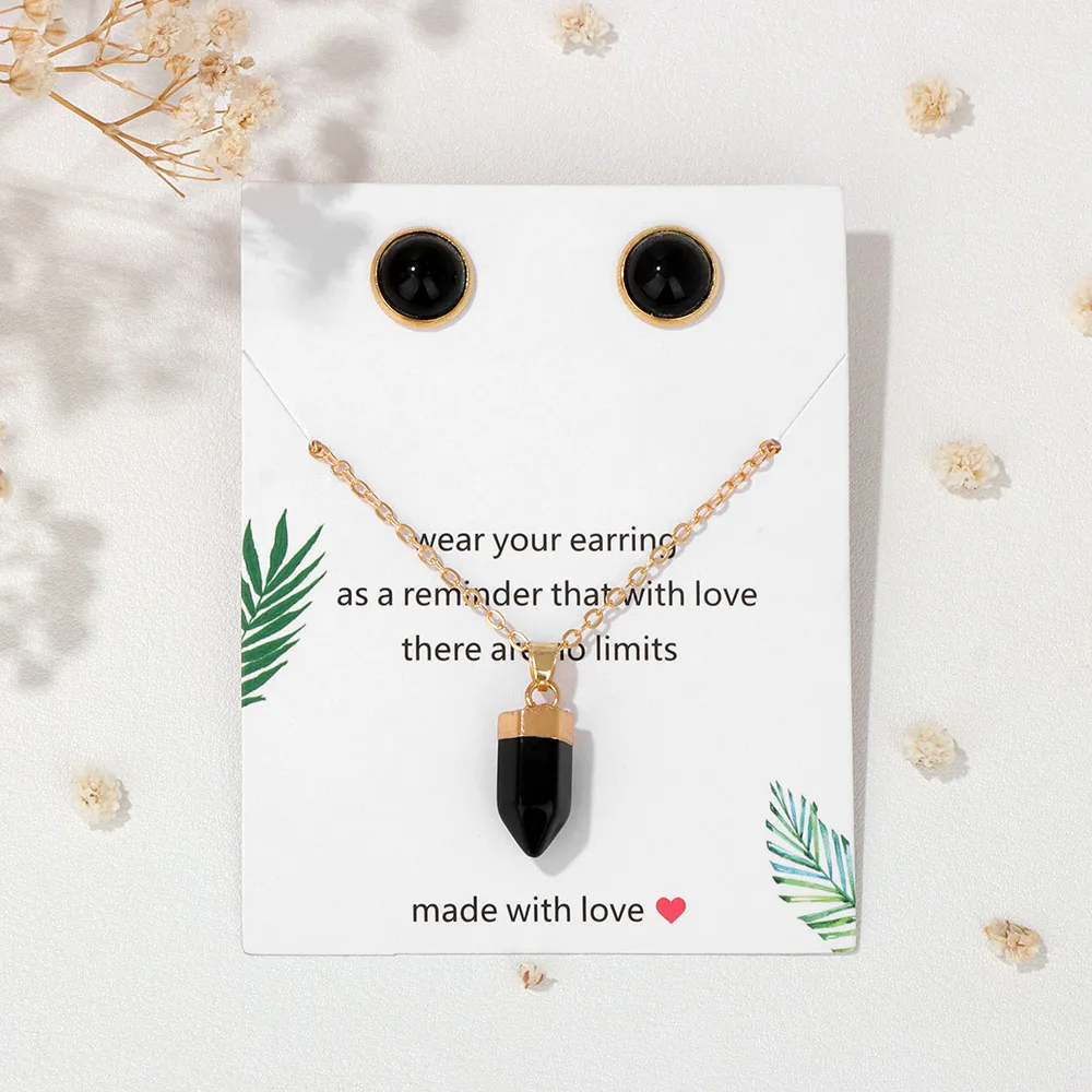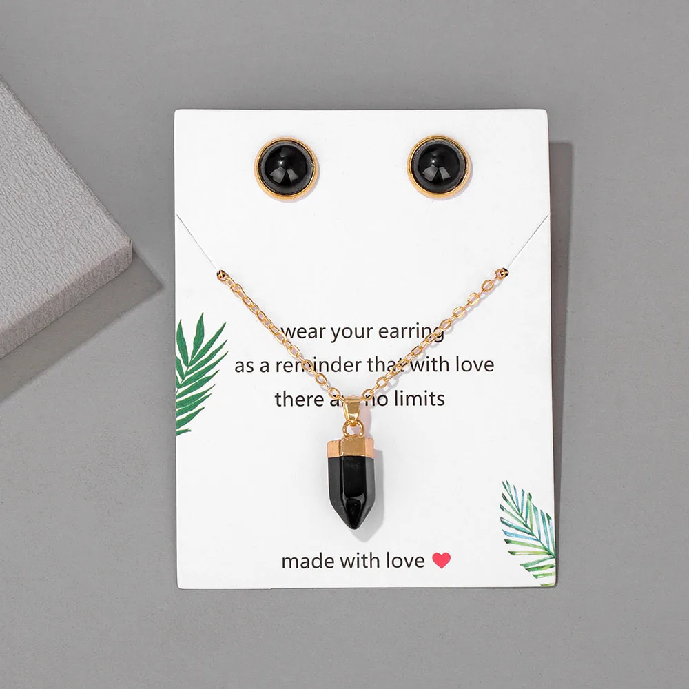 Conjunto pendientes y colgante hexagonal de piedra natural-Elegancia y Energía en un Solo Set