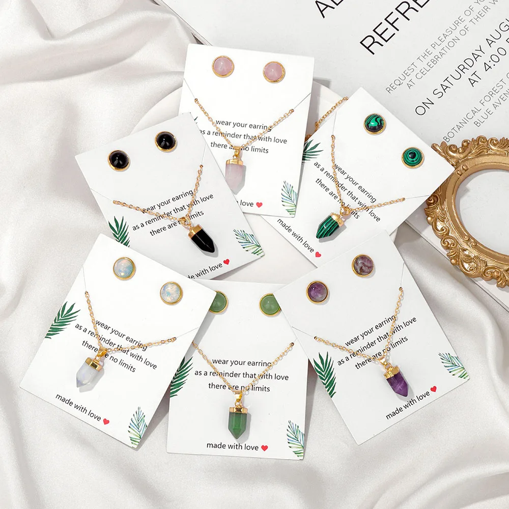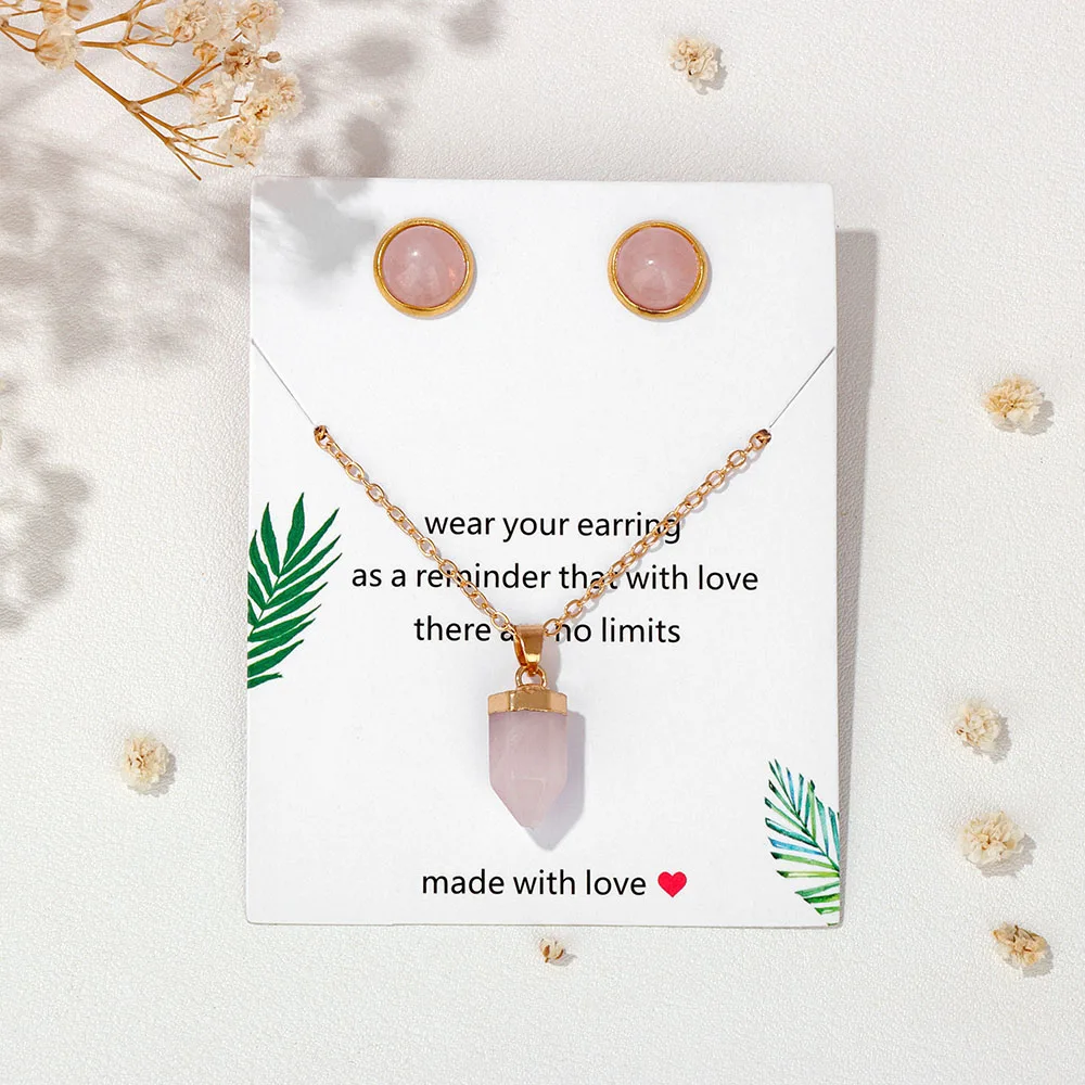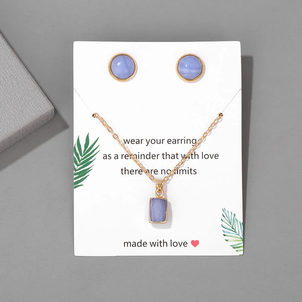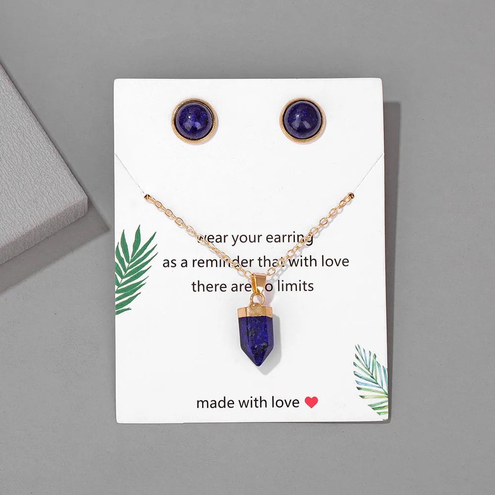 Conjunto pendientes y colgante hexagonal de piedra natural-Elegancia y Energía en un Solo Set