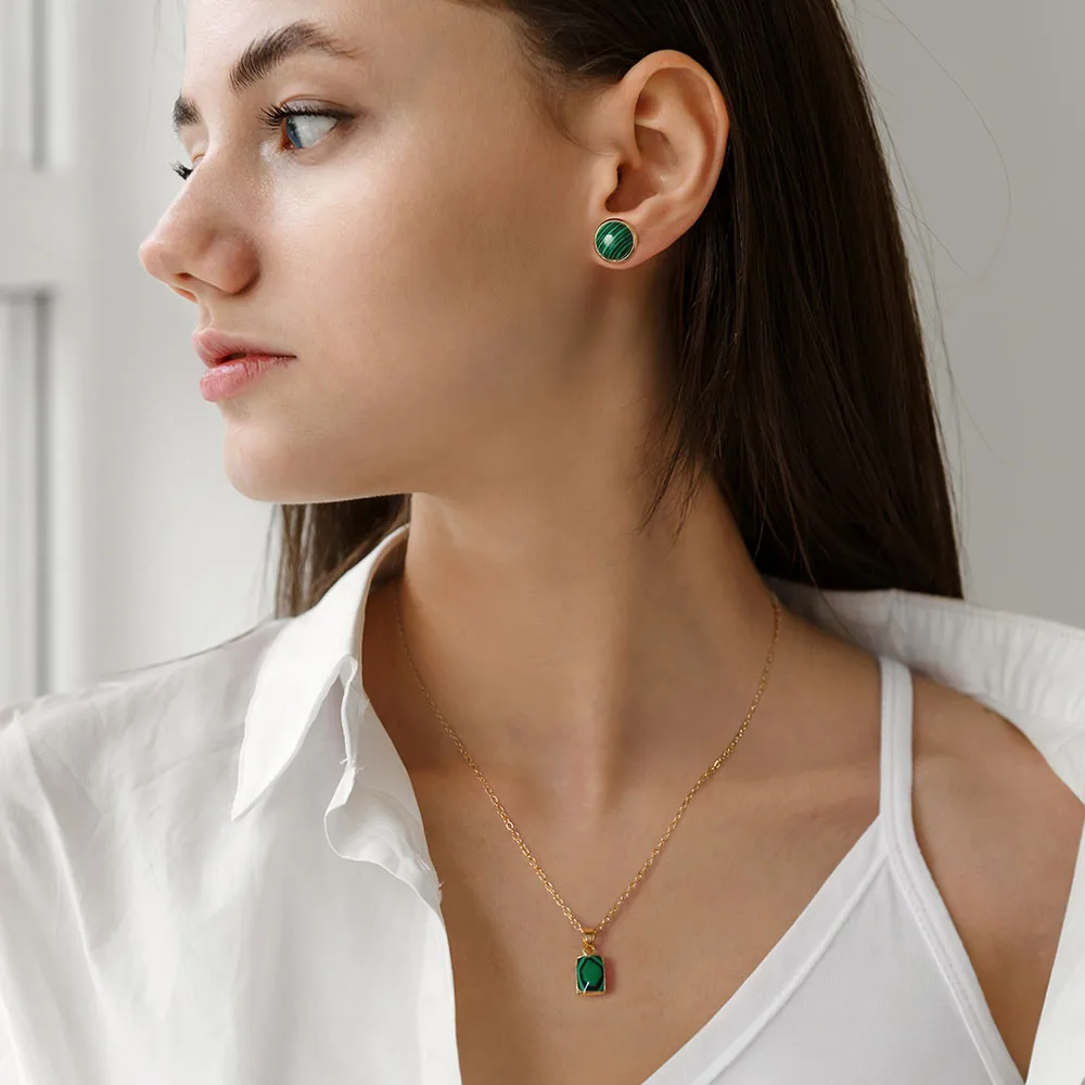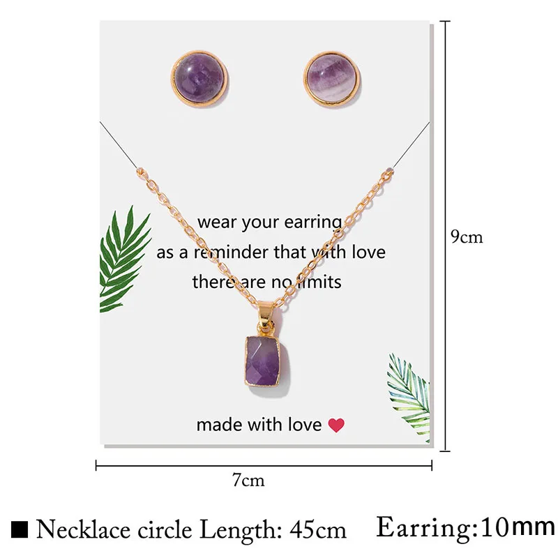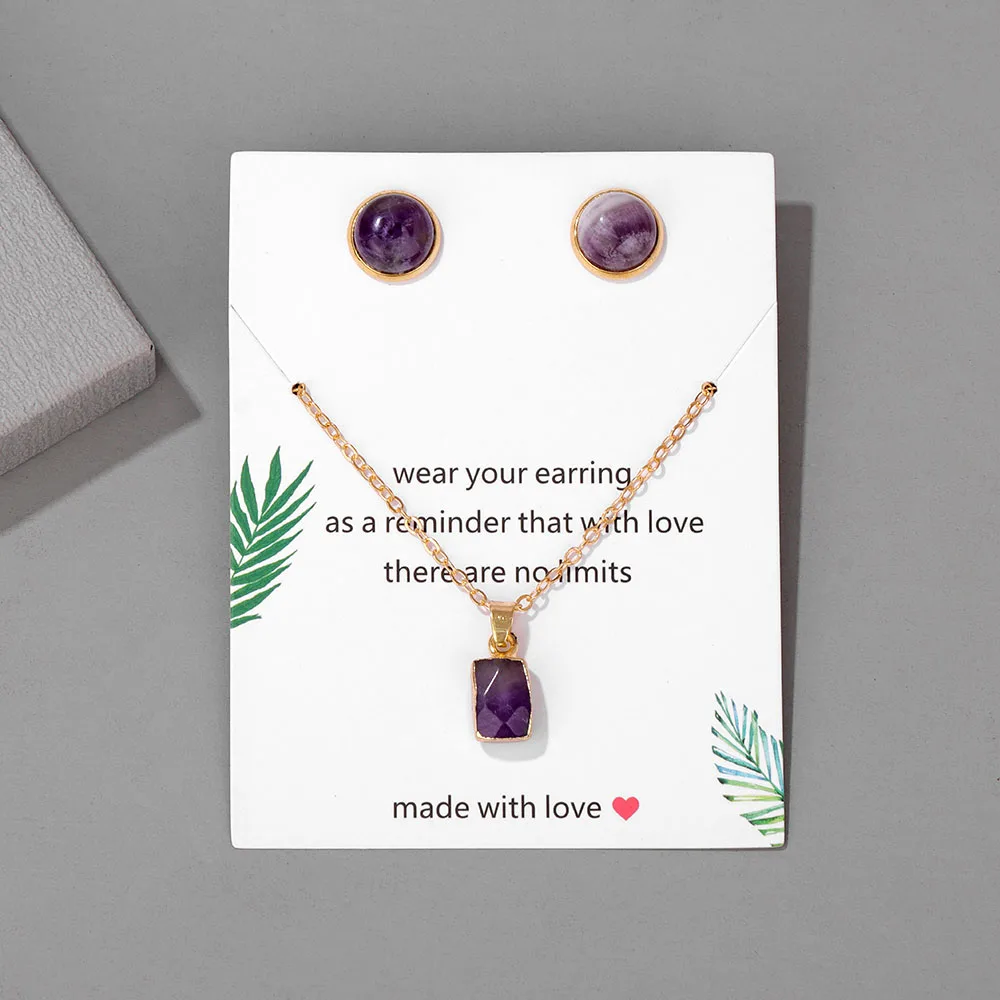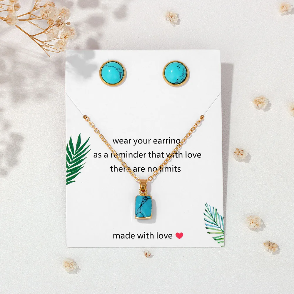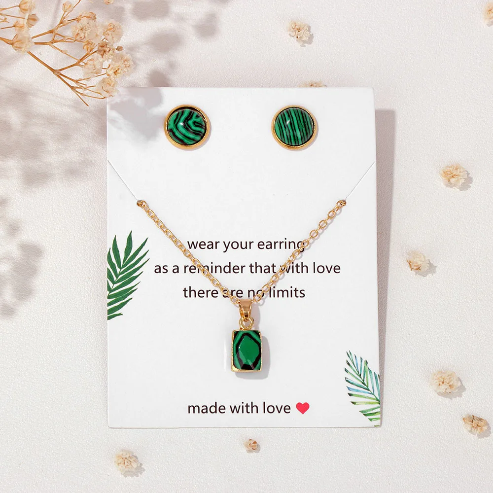 Conjunto pendientes y colgante hexagonal de piedra natural-Elegancia y Energía en un Solo Set